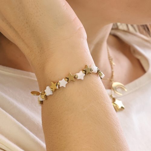 POM Waterproof Gold and White Star Bracelet