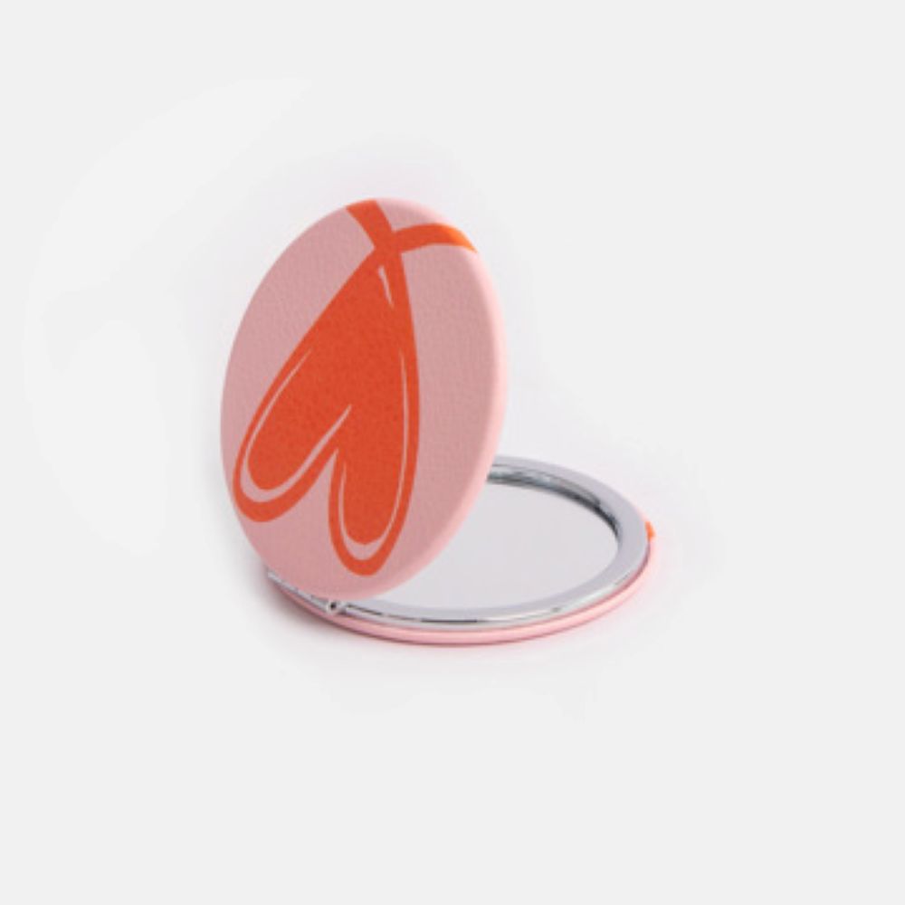Caroline Gardner Pink & Orange Heart Round Pocket Mirror