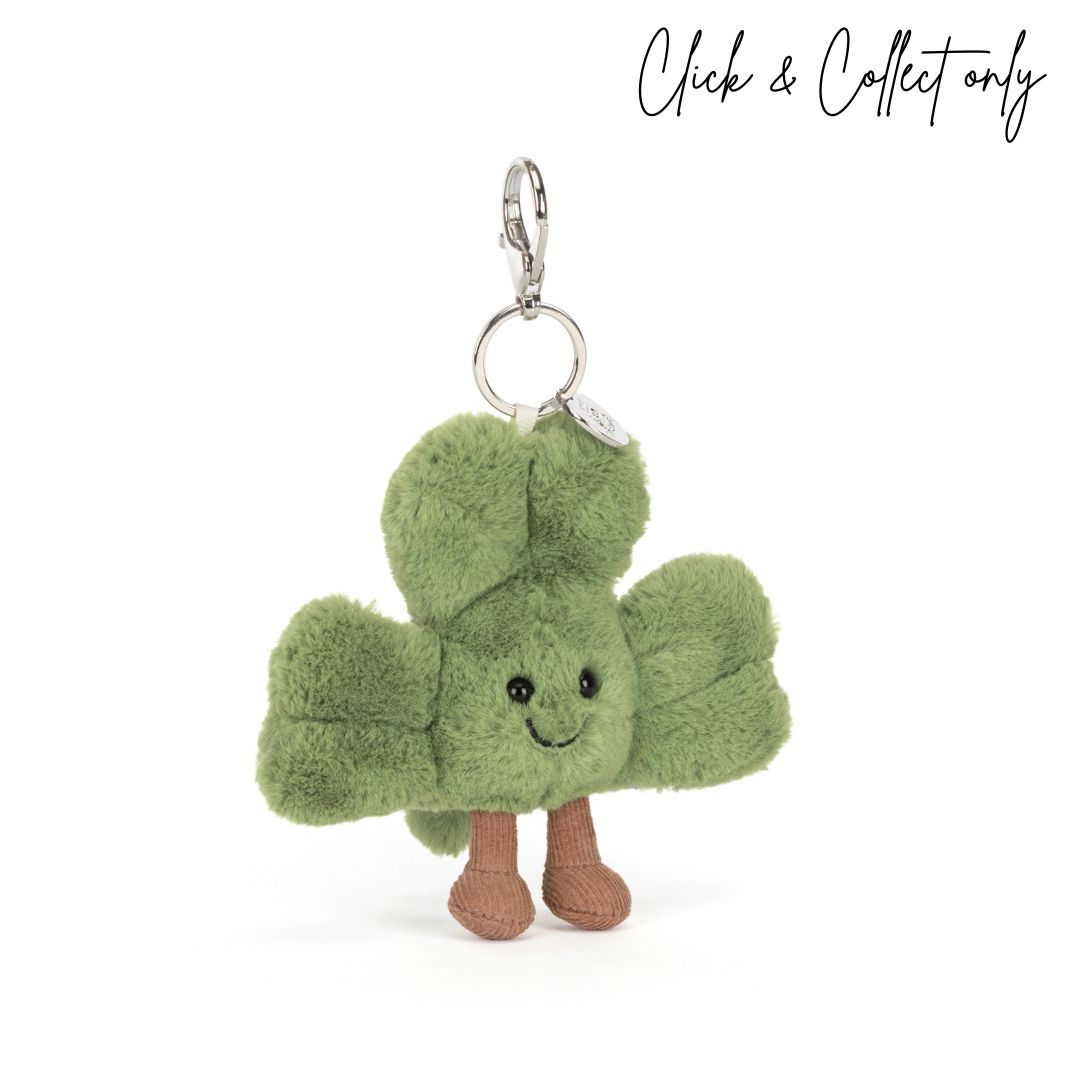 Bring a little positivity wherever you go with the Jellycat Amuseables Shamrock Bag Charm. With soft green leaves, neat cordy boots, and a sturdy silver clasp, it’s the perfect way to add a touch of Jellycat charm to any bag or keychain.