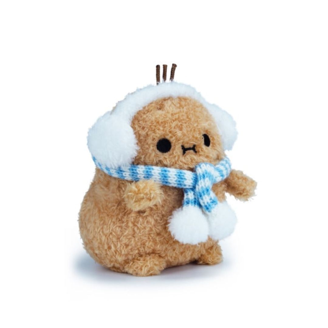 All wrapped up and ready for winter, this Ricespud sure knows how to keep snug! Your favourite mini potato plushie is all dressed up for the chilly holiday season! This spud is made from super soft brown fabric, with comfy white earmuffs and a removable blue scarf, and they’re stuffed to the brim for those extra chubby cuddles. Safe for little ones 0+ (CE and EN71 certified).