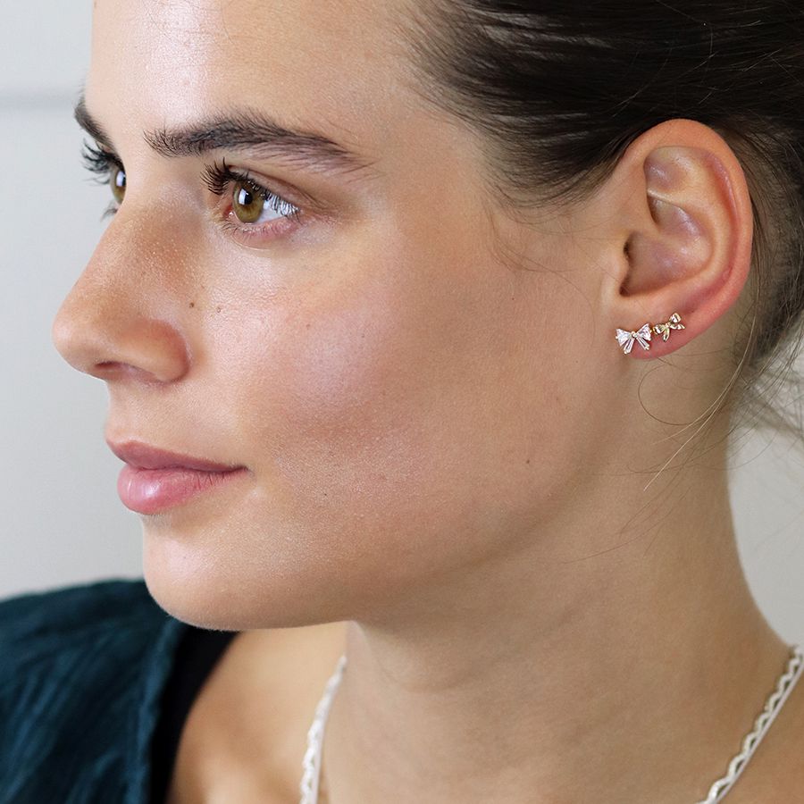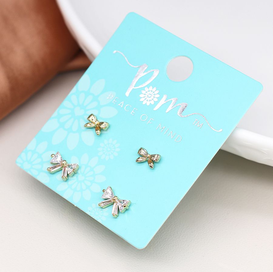 This earring set from POM features two pairs of bow studs, one with a polished golden finish and one inset with crystals.