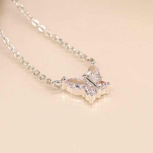 This beautiful, silver plated necklace from POM features a delicate crystal set butterfly pendant.
